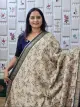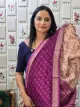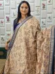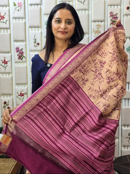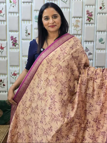 BEIGE AND PLUM AND NAVY BLUE COLOUR CHANDERI SAREE WITH FLORAL PRINTS AND ZERI BORDER