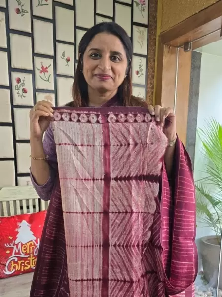 Beautiful shibori printed saree with cut work highlighting and sequence mirror detailing along with blouse.