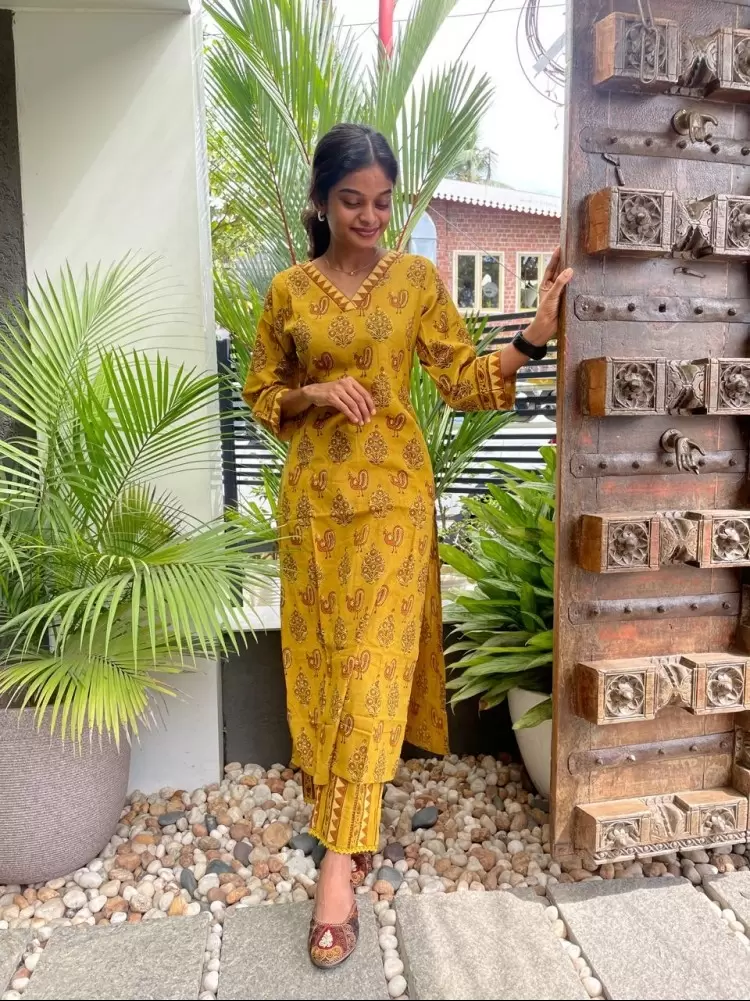 Beautiful and casual cotton handblock printed top and bottom [ NB: Its done with organic supplements, so first wash should be dry cleaning ]