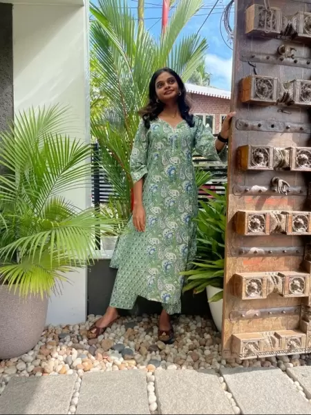 Beautiful and casual cotton handblock printed top and bottom [ NB: Its done with organic supplements, so first wash should be dry cleaning ]
