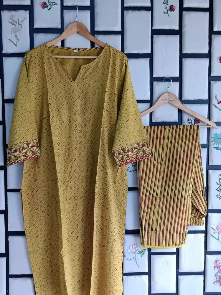 Beautiful and casual cotton handblock printed top and bottom [ NB: Its done with organic supplements, so first wash should be dry cleaning ]