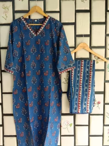 Beautiful and casual cotton handblock printed top and bottom [ NB: Its done with organic supplements, so first wash should be dry cleaning ]