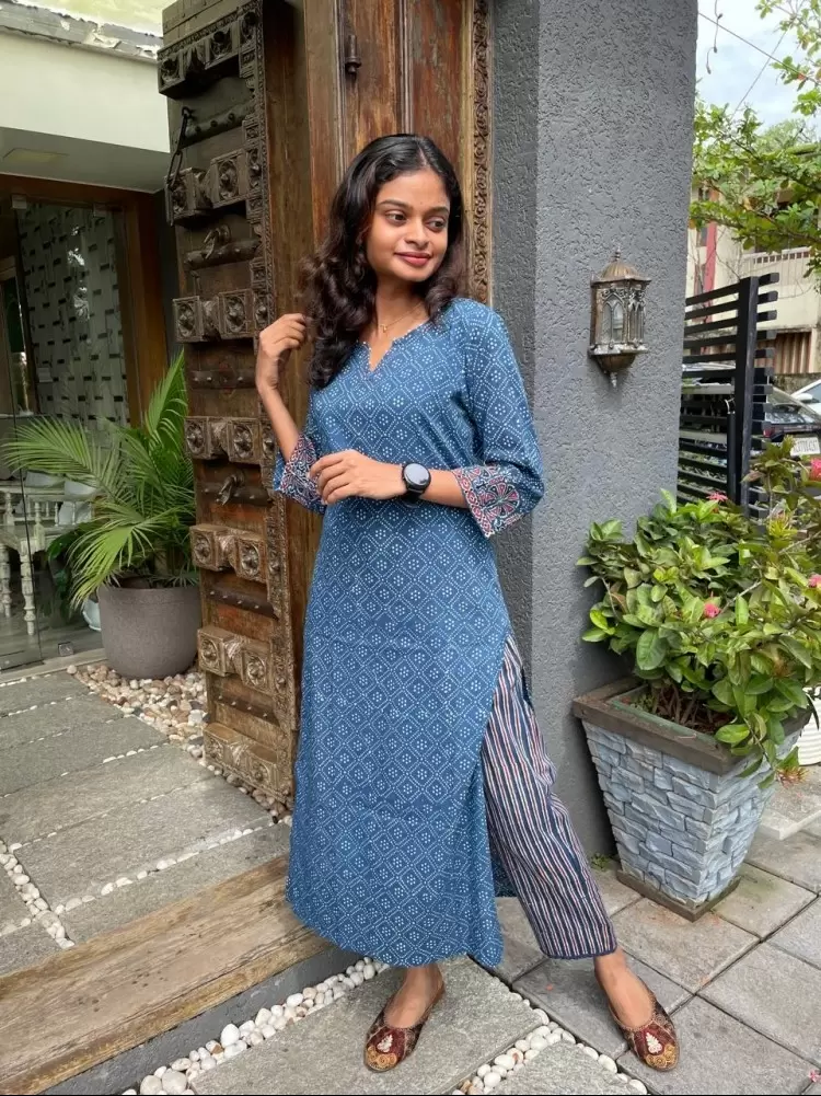 Beautiful and casual cotton handblock printed top and bottom [ NB: Its done with organic supplements, so first wash should be dry cleaning ]