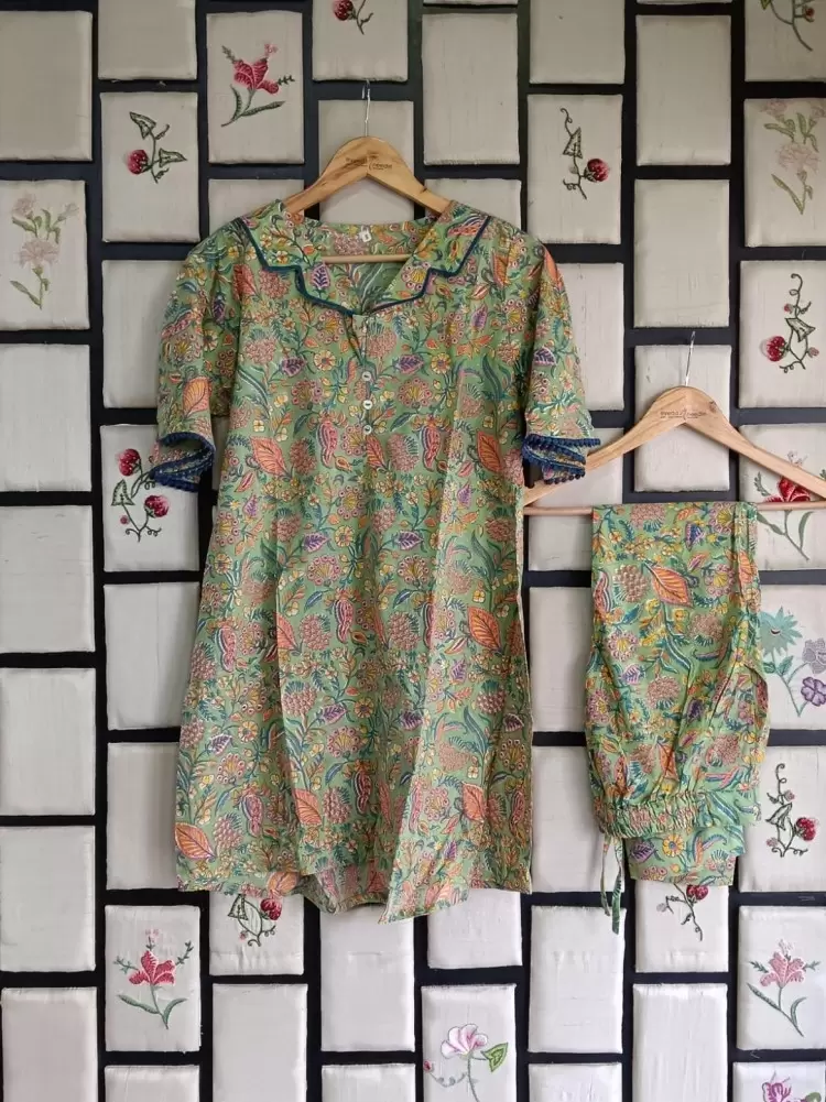 Beautiful and pretty handblock printed casual top and bottom [ Its done with organic suppliments , so first wash should be dry cleaning ]
