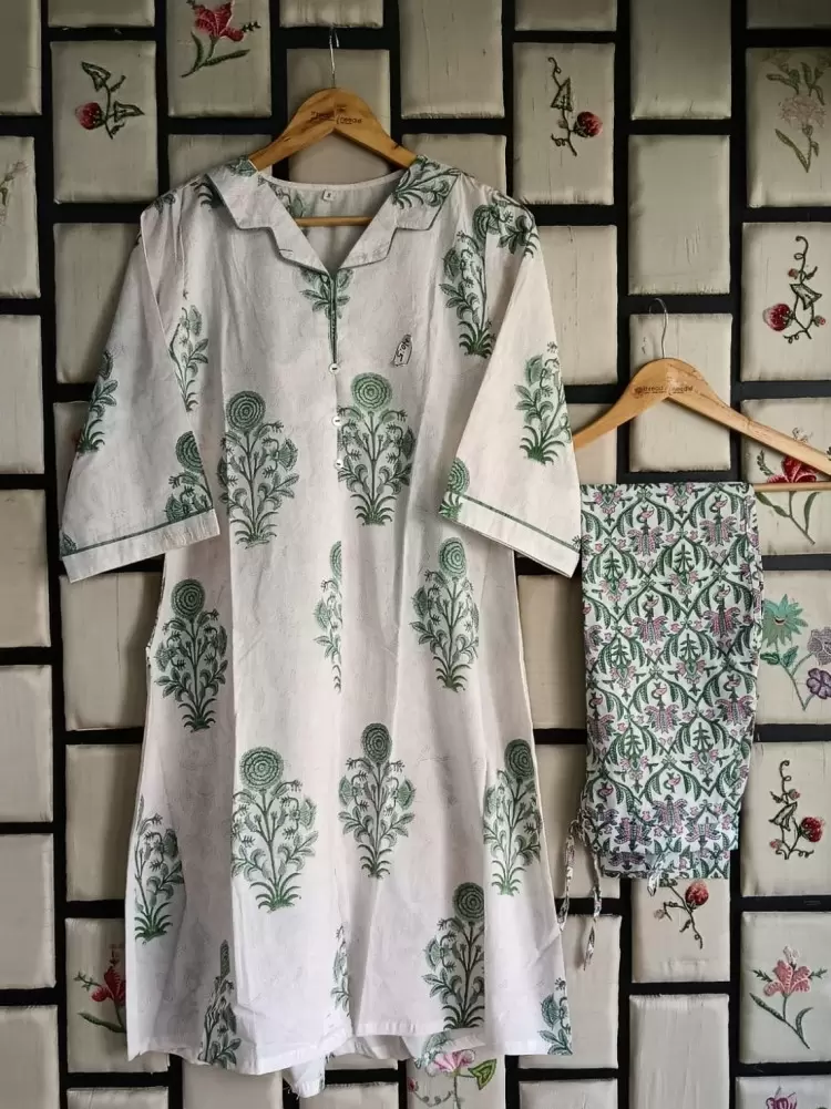 Beautiful and pretty handblock printed casual top and bottom [ Its done with organic suppliments , so first wash should be dry cleaning ]
