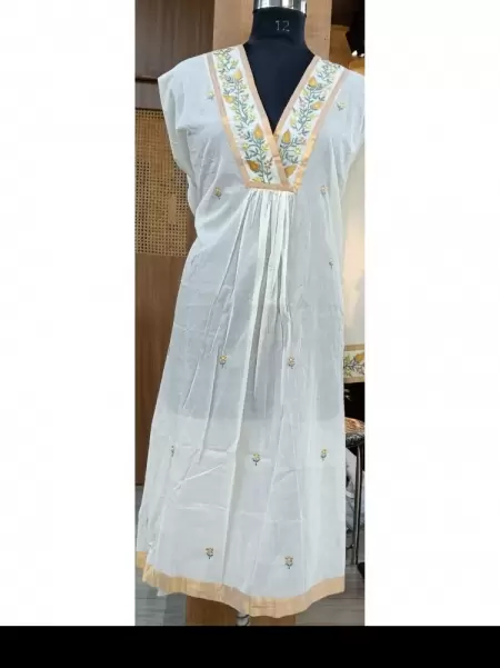 We are introducing our pretty 'ONAM' collection named 'BANDHI JAMANDHI' is comes in beautiful traditional Kerala cotton kurthi done beautiful hand paint, appliqués and embroidery and golden zari at the edges
